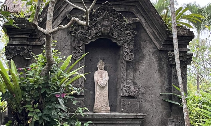 Artistic touches are everywhere you look, both in the house and out. There are paintings by local artists, Indonesian carvings, carved wood and stone around windows and doors, high thatched ceilings and beautiful rock and tile work, all hand done.