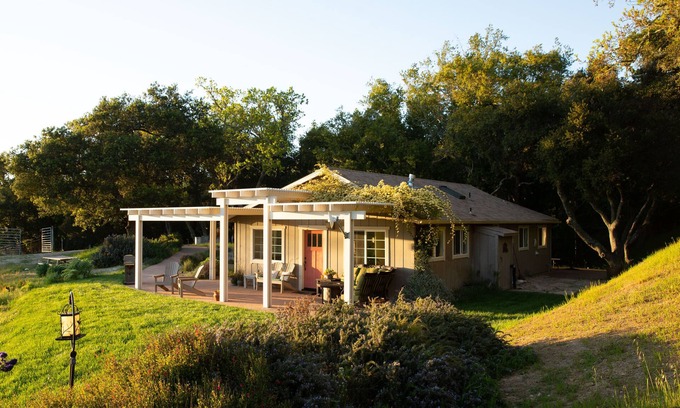 Newly remodeled cottage from the ground up. Enjoy top of the line furnishings, amenities and touches that one would expect from an artist. The large master bedroom is a Southeast Asian retreat with unique pieces from Nepal and Thailand. The queen bedroom takes you back to early California. The kitchen is fully stocked and has granite counter tops and stainless steel appliances. Relax in privacy on the patio overlooking a vast farming valley below or tuck yourselves back in the shade of the oaks and bay trees off the rear patio.