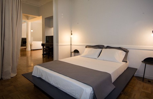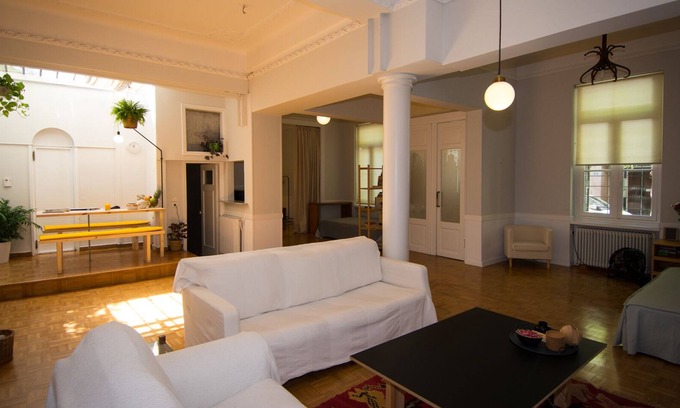 The house is a two-storey building in central Athens. The visitors have access to the self-contained (with its own entrance) ground floor flat which is impressively spacious and full of light.