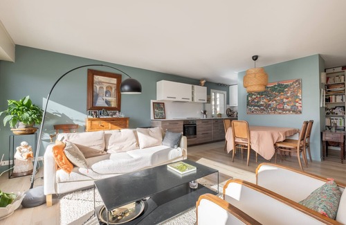 Situated in the family-friendly neighbourhood of Silly-Gallieni, this light and contemporary apartment instantly charms with its sweeping open-plan design, enlivening pops of colour and artistic interior styling. Benefitting from convenient metro links to the city centre, this two-bedroom home is also ideally located for the Parc des Princes and Roland-Garros...