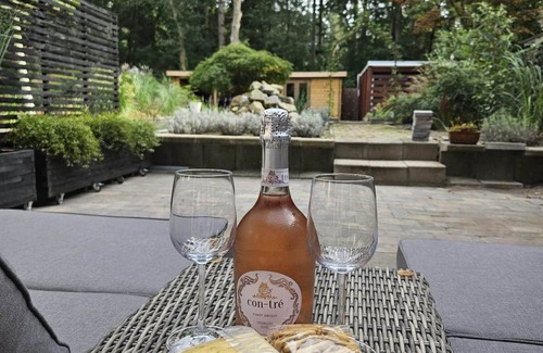 A new, luxury andquiet accommodation for 2, located directly on the edge of the forest of the "Emmerdennen" centralstation and city center of Emmen and the Wildlands Zoo park are within walking distance (1 km). The apartment with sofa, adjustable bed and Smart TV (incl. Netflix), comes with floor heating, climate control, luxury dining kitchen, outside jacuzzi (107 jets!),private bathroom and lounge terrace.Your own parking with charging station.