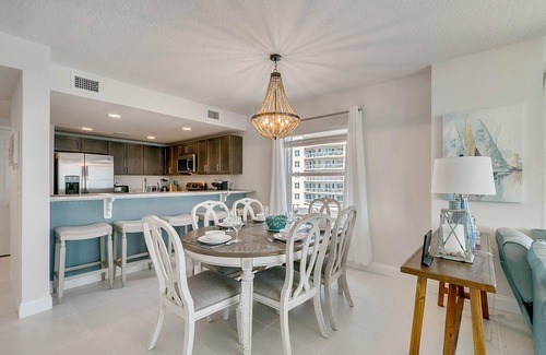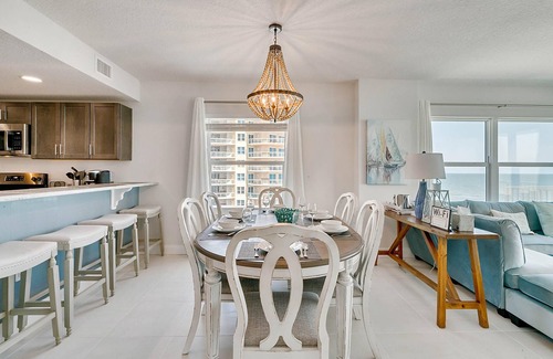 You will fall in love with the views and the size of this 8th floor condo. A rare 4 bedroom condo with 1808 sq ft of space . The balcony is large enough for the whole family to relax and has a great view of the beach/ocean as well as the pier just 3 buildings down with restaurant/bar/fishing pier. Enjoy dining outside with sweeping ocean views from the table. There are incredible views from the balcony, the master bedroom and the family room. The master bedroom boasts an incredible direct oceanfront view. The Kitchen features granite counters and stainless steel appliances. I has all the amenities you would want including a Keurig. The kitchen overlooks the great room which features a 70" flat screen smart TV. All bedrooms are a good size and there is a flat screen smart TV in each for your enjoyment. The Aruba condo building is the newest on the beach with construction completed in February 2021. The pool is heated year round and the hot tub, club room, fitness center round out the resort style amenities. Bedrooms - Master/King, 2nd BR/Queen, 3rd BR/Queen, 4th BR - Full over Queen bunkbed.