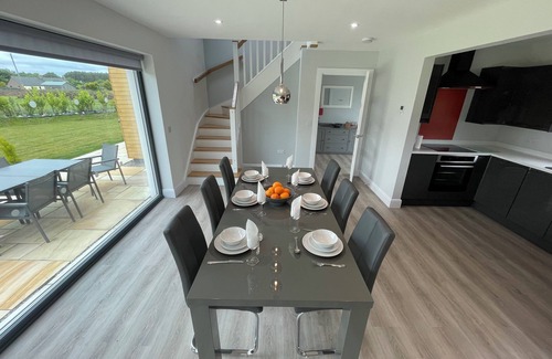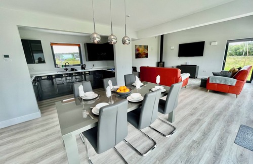 On the edge of the historic town of Dornoch, Ash Mill is a modern energy efficient house perfect for families and golfers. Outstanding open plan living is surrounded by huge glass windows overlooking the garden offering lots of indoor and outdoor space. 3 spacious bedrooms are presented as a King master bedroom and 2 twin bedrooms, one of which converts to a super king bed. A large luxurious shower room on the ground floor is next to the master bedroom and an L shaped bath with shower upstairs. The property has Starlink WIFi which provides the best possible high speed connection for the area and there is a desk for working in the upstairs bedroom. There is ample private parking for a number of vehicles. The huge garden is fully enclosed and there is plenty of space for football and a goal ready set up for budding soccer stars. The modern wood burner and a starter pack of fuel are provided for cozy nights in over the cooler months.