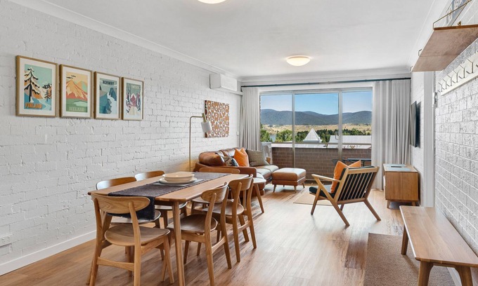 Astrid's at Central Park is the epitome of a wonderfully renovated top-floor 2-bedroom unit. Perfect for a family of five or two couples, it offers captivating views of the mountains and lake, making it an ideal place to stay when exploring the Snowy Mountains.
