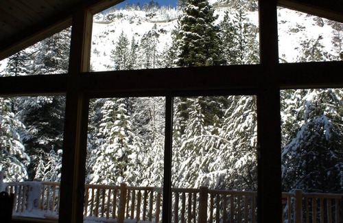 ** Inspiring view of the Echo Summit can be seen in the comfort of our home, including from your private master Jacuzzi bath with its two-way fireplace.
