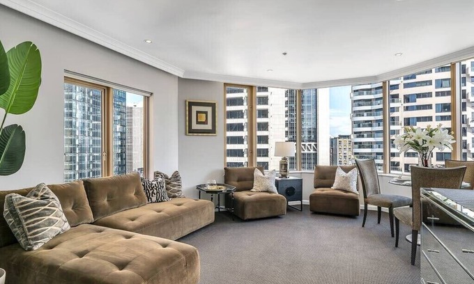 First class amenities greet you at arrival at this iconic building at the centre of historical Sydney. Bask within this newly renovated, one-bedroom apartment located on the 15th floor with spectacular Sydney city views and water glimpses. The spaciousness of this apartment will make your Sydney experience one to remember.