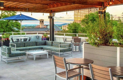 We're located in Portland’s Pearl District, north of downtown, within a five-minute walk to dining in Portland's brewery blocks and surrounded by shops. The local streetcar and the Union Station are five minutes away. Enjoy our on-site restaurant, indoor pool, rooftop patio, and our fitness center featuring a Peloton® Bike with toe cages.