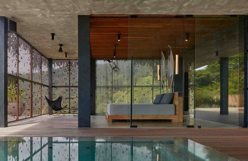 Encounter the breath-giving force of nature from a rare, serene space that merges the elements in polished simplicity. Burnt wood mingles with light and space in a distinct raster facade, nestled extravagantly in steep jungle canopy. Feel grounded, elevated, and expansive, all at once.
