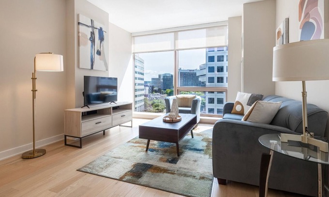 As you settle into this 1-bedroom, 1-bathroom rental, you'll find a sitting area, a dining area, climate-controlled air-conditioning, and a desk. Bathroom amenities include a hair dryer, free toiletries, and towels. Prepare a home-cooked meal in the kitchen, complete with an oven, a stovetop, and a full-sized refrigerator/freezer, as well as a microwave and cookware. And because there's a washer/dryer, you can go a bit lighter on your packing. Other amenities include concierge services, an ironing board, climate-controlled heating, and coworking spaces.
