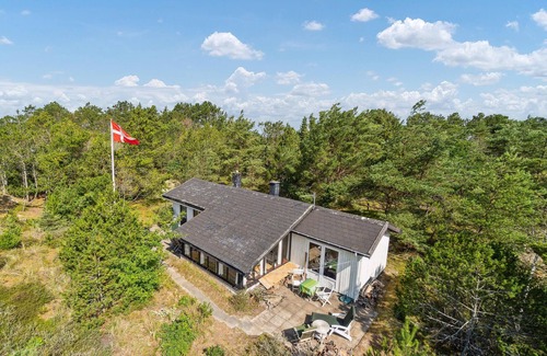 South of Skagen, close to the Kattegat, this vacation home welcomes you in charming, natural surroundings. If you are not dreaming of luxury and wellness, but rather appreciate the right, atmospheric atmosphere and proximity to fantastic nature, then you are in exactly the right place. Spend cozy hours in the bright living room playing board games or reading your favorite book and warm yourself on cool days by the quiet crackling of the flames in the fireplace.