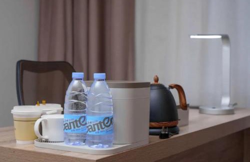 Food & DrinkTea/Coffee maker, Bottle of waterBathroomPrivate bathroom, Shower, Slippers, Toilet, Towels, Toilet paper, Toothbrush, Shampoo, Conditioner, Free toiletries, HairdryerMedia & TechnologyCable channels, TV, Telephone, Flat-screen TVGeneralSoundproof, Heating, Air conditioning, Trash cans, Key card accessLiving AreaSitting area, Sofa, DeskViewCity view, ViewServicesWake-up serviceBedroomAlarm clock, Linens, Wardrobe or closetKitchenElectric kettleRoom AmenitiesClothes rackAccessibilityAccessible by elevator |