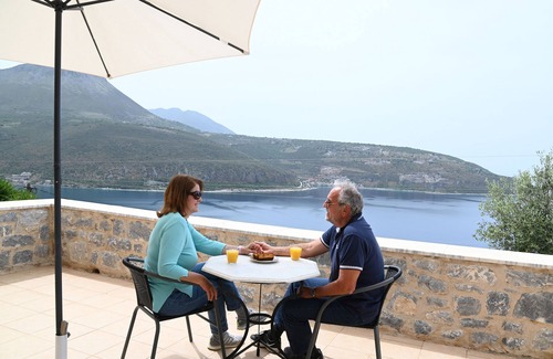 Built according to the local architecture, Atreas studio apartment at Selana View is a traditionally decorated apartment with fireplace and furnished balcony overlooking the Messinian Gulf. The beach is a 5-minute drive away and the historic village of Oitylo is at 1 km.