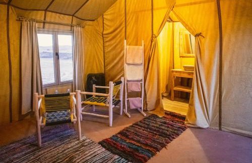 Auberge Bivouac La Belle Etoile in Merzouga provides accommodations with a terrace and a bar. Guests can access the luxury tent via private entrance. There's a fully equipped private bathroom with bath and free toiletries. The rooms are equipped with heating facilities. A continental breakfast is available at the luxury tent. Moulay Ali Cherif Airport is 67 miles away.