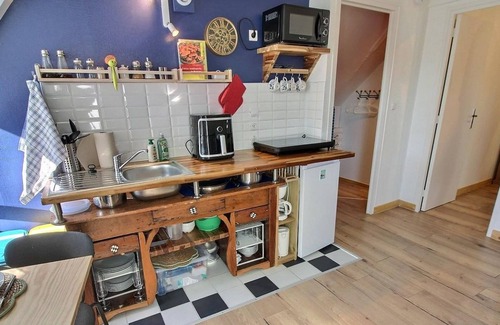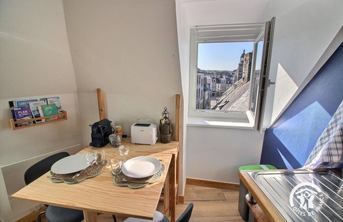 Your vacation apartment, located on the 3rd floor (no elevator), includes: Common Areas • Entrance hall with a library corner Inside the Apartment • Entrance hall with a step • Kitchen open to the living room • Shower room with bathtub and toilet • Bedroom with a 140x190 cm bed Outside • Covered parking is available just 200 m from the apartment (badge provided) A small pied-à-terre in the heart of Saint-Brieuc's town center, in the historic district, just steps from Saint-Étienne Cathedral. Ideal for a 2-night stay off-season (4 nights in summer), this vacation apartment is located in a characterful building occupied year-round by two tenants. A unique café (closed at 10 p.m.) enlivens the small square downstairs. Once you've parked your car, relax! Everything is within walking distance: markets on Wednesday and Saturday mornings, shops, restaurants, buses, and the train station are 1.7 km away. The charming Port du Légué awaits you, where you can enjoy Michelin-starred and non-starred restaurants, terrace bars, markets, or strolls along the marina. On the seaside, Rosaires Beach is 7.5 km away, and the seaside resort of Binic is 14 km away. With a 360° view of the Bay of Saint-Brieuc, the Pointe du Roselier, 8 km away, is an unmissable viewpoint. The entire bay, all the way to the end of Yffiniac Cove, is revealed before our eyes.