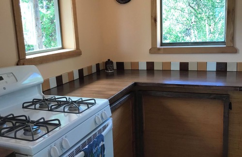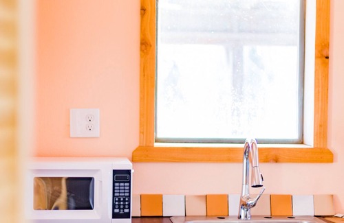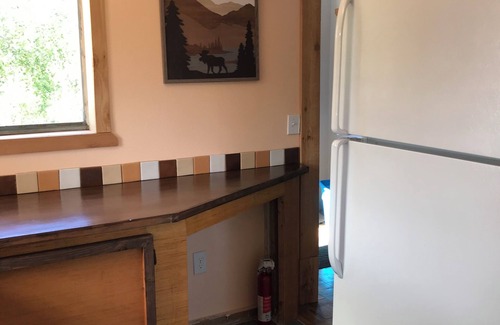 The authentic Alaskan cabin has an open great room, with sleeper couches, and a built-in dining area. There is a queen blow-up mattress available that is able to sleep two guests in this area. The sitting room, with a day bed and an additional twin mattress, opens to a private patio. Up a steep stairs, which adds to the experience, leads to the loft. The loft has a comfortable full bed, exhilarating views, and additional amenities. The kitchen is full service, with fridge, sink, microwave and stove. Off the main entrance deck, the mountain views are beyond description. The bathroom offers a sink, shower, and a waterless Separett toilet. However, for those truly desiring the full Alaskan experience, there is an “elite” outhouse out back as well. If your previous adventures have left you exhausted, not to worry…we will provide wireless Internet and Netflix.