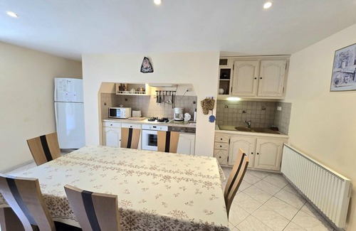 House close to the owners' premises. On the ground floor, a living room with a kitchenette, a living room, and a lounge with a 4-seater sofa and television. Wi-Fi internet connection. 1 bedroom with a 140 cm bed. Shower room with a washing machine. Separate toilet. Upstairs, 14 steps: 2 bedrooms, one with a 90 cm bed and one with a 160 cm bed. Shower room. Separate toilet. Electric heating. Gardens, swing, ping-pong table, barbecue, and plancha. Private parking on site. Swimming pool accessible with stairs and ladder. Baby equipment: cot, high chair. Périgord house in a rural location where you can visit more than 50 tourist sites in the Périgord or Lot regions within a 50-kilometer radius.