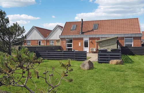 In the scenic area between Ringkøbing Fjord and the North Sea, this vacation home welcomes you. The comfortably furnished interior extends over two floors and makes a bright, welcoming impression. Feel at home in the relaxed atmosphere and enjoy the view of the fjord on the second floor. After a long walk in the fresh air, you will find comforting warmth in the sauna or whirlpool. Spend sunny hours on your terrace and later prepare a summer dinner on the communal grill.