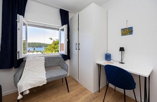 This tasteful flat in Necujam offers you everything you need for a relaxing stay. The beautiful furnishings and cosy atmosphere make it the perfect retreat. Relax in the private hot tub and enjoy the breathtaking view of the sea and the surrounding landscape. The proximity to the beach as well as shops, cafés and restaurants allows you to organise your holiday just as you wish.