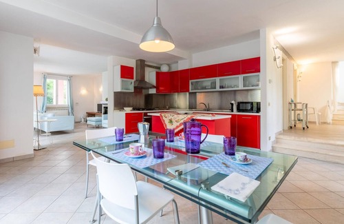 Welcome to the inviting house at the gateway to Tuscany, where you can feel at home from day one. Look forward to individually furnished and bright rooms with exciting colour accents, enjoy the view of the surrounding countryside, dine together at the long dining table and make yourself comfortable on the sofa in the evening after an eventful day.