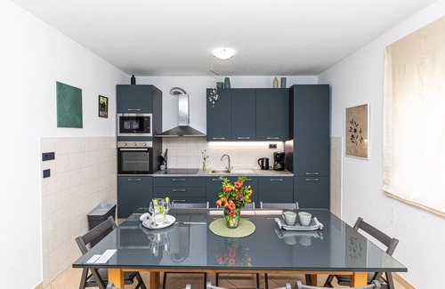 This beautiful vacation house with pool is located in Kastel Stafilic. The house consists of three bedrooms, three bathrooms and kitchen with living room. At your disposal is also a barbecue on which you can prepare various specialties. The youngest family members will surely enjoy the available children's content. Kastel Stafilic is famous for its Rotondo castle, built in 1508. You should also visit the historical town of Trogir.