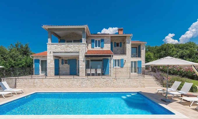 Villa Sterpazzi is a traditional Istrian villa with a stone façade and blue shutters. It is surrounded by greenery and flowers, which you will notice especially by the scent of lavender that spreads through the property.