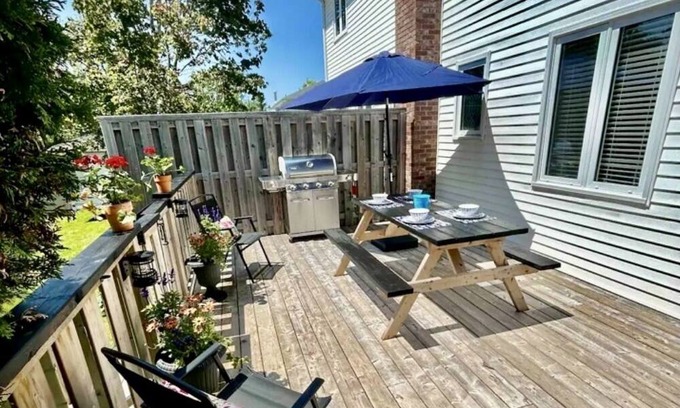 This warm and inviting home is centrally located, on a quiet cul-de-sac and safe neighbourhood. 4 car driveway, landscaped front and back yard, private enclosed deck with BBQ, and a place to unwind that overlooks a peaceful backyard. With our guests utmost comfort in mind, we provide a relaxing staycation with all the amenities, and more of home sweet home. 3 heat pumps with AC, WIFI and TV apps that include Netflix, Prime, Disney, etc. Universal cell charger in each room, board games and plenty of books to read. For your infants and toddlers, we have a pack-n-playpen, a sport utility stroller, high chair, booster chair and children's books/outdoor toys to entertain them. A full applianced, and stocked kitchen including spices, to make cooking just like you were at home. Cooking essentials, and utensils galore. For the coffee enthusiast, we have Keurig dual coffee maker, Nespresso espresso maker and a French press. We include a few days of coffee pods (caffeinated and non-caffeinated), and espresso pods, as well as an assortment of teas. In addition to a Bluetooth Bose music system. Enjoy a peaceful night sleep with quality linens, pillows, comfortable mattresses and black out curtains. Each room has dressers, luggage stands and closest with coat hangers, clothes iron, spray starch and ironing board. The master bathroom is equipped with shampoo, conditioner, body wash, hair blow dryer, flat iron and curling iron. First Aid kit, and toiletries you may have forgotten to bring. Besides plenty of bath towels, we also provide beach towels/umbrella. We are just a 5 minute drive to local grocery stores, 3 pharmacies, liquor store, restaurants, coffee and ice cream shop, 18 hole golf course, 2 beaches, Off the Wallz children's amusement centre. For the fitness enthusiast we have gyms, SPINCO indoor cycling facility, biking/hiking trails, and Red Rock climbing wall centre. Lastly, we are conveniently located 7 minutes from downtown Charlottetown, and the Trans Canada Highway to explore all of PEI's beautiful national parks, beaches, etc. From the airport, we are a 12 minute drive.