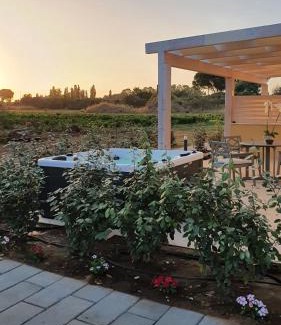Azienda Agricola I Peperoncini in Alghero provides accommodations with an open-air bath, a garden, and a bar. This property offers a private pool and free private parking. The accommodation features a hot tub, free Wifi throughout the property, and family rooms. The farm stay will provide guests with air-conditioned units with a wardrobe, a coffee machine, a fridge, a minibar, a safety deposit box, a flat-screen TV, a terrace, and a private bathroom with a hot tub. A patio with an outdoor dining area and garden views is offered in each unit. Additional in-room amenities include wine or champagne, fruit, and chocolates or cookies. Continental and full English/Irish breakfast options with warm dishes, local specialities, and fresh pastries are available. There is a coffee shop, and packed lunches are also available. The farm stay offers a variety of wellness options, including a spa center, a fitness room, and yoga classes. The area is popular for bike tours, and bike rental is available at the farm stay. Guests can also relax in the shared lounge area. Alghero Marina is 4.8 miles from Azienda Agricola I Peperoncini, while Nuraghe di Palmavera is 7.8 miles away. Alghero Airport is 3.7 miles from the property, and the property offers a paid airport shuttle service.
