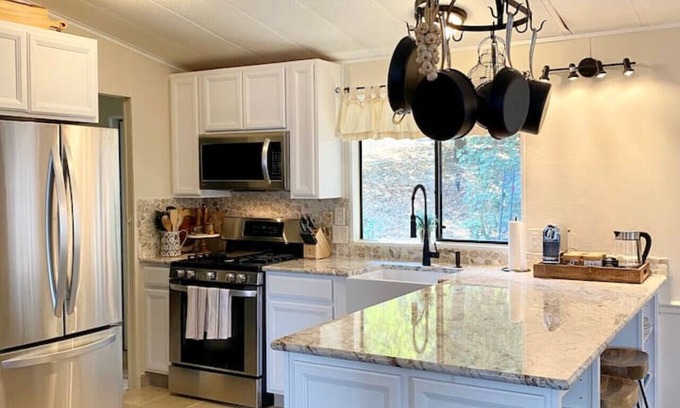 To entertain you, the game parlor, complete with WiFi books, board and card games, bluetooth capable vinyl record player and vintage radio, full spectrum 50" SMART TV with complete Direct-TV and Netflix programming, you will find plenty of options to keep you entertained. For working remotely, we offer several laptop friendly workspaces including comfortable desk chairs and lamp, smart monitor and speakers and multiple charging stations with phone chargers and built-in usb wall ports. There is also a private workspace with desktop when total privacy is needed. If just unwinding is your plan, you will find it easy to complete the stress free experience you're searching for as you will love the spa shower complete with jacuzzi soaking tub to melt all of your cares and sore muscles away. Sink into your pillow top mattress with 1250 thread count Egyptian cotton sheets and you won't find the need to count sheep at night to help you drift right off to sleep. And as you awake in the morning, you'll find both the Nespresso and Keurig coffee makers and a great selection of teas and cider to start your morning off on the right note.