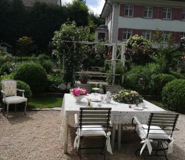 Offering inner courtyard views, B&B Rosenliebe in Niedereschach provides accommodations and a garden. The property is around 7.1 miles from Neue Tonhalle, 19 miles from Triberg Waterfalls, and 21 miles from German Clock Museum. The bed and breakfast offers garden views, a sun terrace, and free Wifi is available throughout the property. All units come with a seating area, a flat-screen TV with satellite channels, and a private bathroom with bathrobes and walk-in shower. At the bed and breakfast, all units are soundproof. At the bed and breakfast, the units are fitted with bed linen and towels. A selection of options including fruit, juice, and cheese are served for the continental breakfast. A mini-market is available at the bed and breakfast. Guests at the bed and breakfast will be able to enjoy activities in and around Niedereschach, like skiing, cycling, and hiking. The bed and breakfast has a picnic area where you can spend the day outdoors. Stadthalle Tuttlingen is 22 miles from B&B Rosenliebe, while Alpirsbach Abbey is 25 miles away. The nearest airport is Stuttgart Airport, 63 miles from the accommodation.