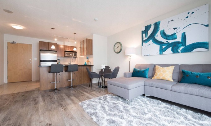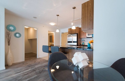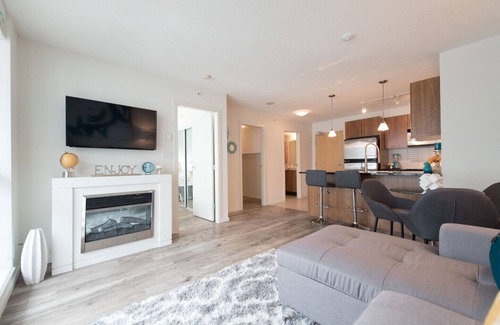 This beautifully decorated functional one bedroom is the perfect home away from home. It's across from Emery Barnes park and high up above the Vancouver Film Festival offices with restaurants and a grocery store just steps away. The unit is modern and spacious and houses all the luxuries required for your stay. The lovely open concept one bedroom has a fully equip kitchen, two TVs, queen size bed in the bedroom, in-suite laundry and storage and a spacious living space for you to call home during your stay in Vancouver.
