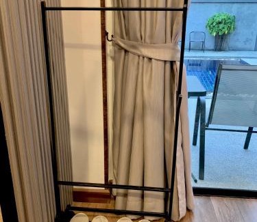 Food & DrinkTea/Coffee maker, Bottle of waterBathroomShampoo, Slippers, Private bathroom, Towels, Body soap, Shower, Hairdryer, Shower cap, Free toiletries, Toilet paperGeneralTile/Marble floor, Key access, Air conditioning, Safe, Heating, Trash cans, Key card access, Private entranceMedia & TechnologyTV, Cable channels, Flat-screen TVKitchenMicrowave, Refrigerator, Toaster, Kitchenette, Electric kettle, Dining tableLiving AreaSofa, Dining area, Sitting areaOutdoorsPatio, Terrace, Outdoor furniture, Outdoor dining areaBedroomWardrobe or closetViewPool view, Mountain viewAccessibilityEntire unit wheelchair accessible, Entire unit located on ground floorRoom AmenitiesClothes rack, Sofa bed, Non-feather pillow, Socket near the bed, Drying rack for clothingPool and SpaPool towels, Saltwater pool, Shallow endLayoutWindow |