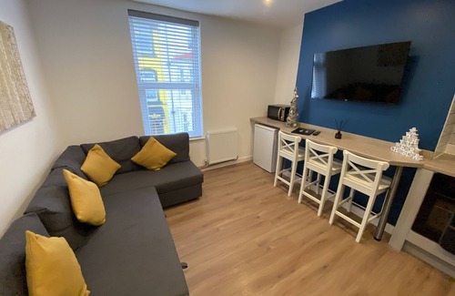 Studio Apartments - perfect apartment for couples looking for a staycation in a great Blackpool location. Our studios are furnished as an open plan living with a comfortable double bed, kitchen and separate bathroom with a shower. Sleeps up to 2 guests.