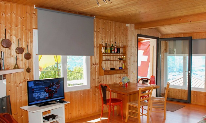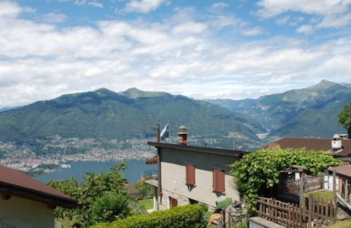 "Baita Monti di Piazzogna", 3-room house 55 m2. Object suitable for 2 adults + 2 children. Practical and cosy furnishings: open large living/dining room with open-hearth fireplace and Scandinavian wood stove (only for decoration), dining table and satellite TV (flat screen). Exit to the garden, to the terrace. 1 small double bedroom with 1 double bed (160 cm, length 200 cm). 1 room with 1 x 2 bunk beds (90 cm, length 200 cm). Open kitchen (oven, 4 ceramic glass hob hotplates, toaster, kettle, electric coffee machine, Capsules for coffee machine (Dolce Gusto) extra, raclette grill, fondue Set (cheese)). Shower/WC. Electric heating. Large patio partly roofed. Terrace furniture, barbecue, deck chairs (3), sitting area. Marvellous panoramic view of the lake, the mountains and the countryside. Facilities: hair dryer. Internet (WiFi). Suitable for families. Maximum 1 pet/ dog allowed. Fantastic view of the dam, Locarno / Ascona and the wonderful landscape, Lake Maggiore with the Brissago Islands. Baby equipment, you can bring your own. NL-00005892