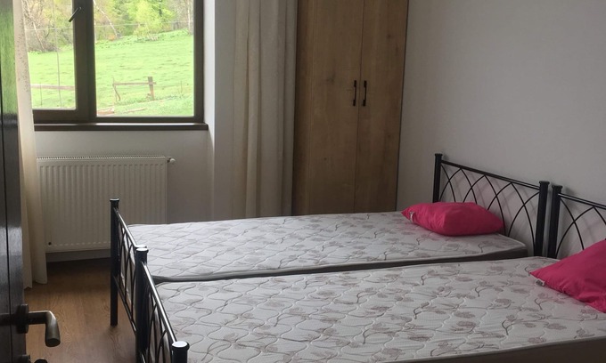 Newly renovated apartment in the very center of mountains, all green surrounding, famous skiing area just 1 minute walk. Bright, lovely and cozy 2 bedroom apartment which suites 7 persons. Cheaper for summer seasons. fully furnished with all kitchenette and toiletries accessories. in the building there is the receptionist and restaurant. outside garden with children playground and parking space!!!