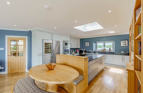 The kitchen has all that you could need with granite worktops and modern induction hob and ovens, even a steam oven and wine fridge. There is all you need for preparing that special occasion dinner or just a light lunch; if you would rather have a dinner prepared for you then local caterers are happy to help. There is also a separate breakfast table so that you can enjoy the rising sun with your morning coffee.