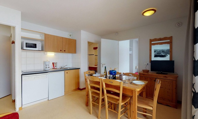 BALCONS - APARTMENT B 007Sleep in this pleasant apartment in the resort of Termignon, France,The "Les Balcons de la Vanoise" residence is close to the village, shops and restaurants, and can accommodate up to 6 people.CLOSE TO THE CABLE CARS – BALCONY – PARKING – TELEVISION----------------------------------------------YOUR ACCOMMODATIONComfortable 3* apartment of 30 m2 on the ground floor. Living room with balcony and television. Open kitchen equipped with fridge and freezer, dishwasher, microwave, coffee maker, kettle and toaster.- Living room: 1x double sofa bed 140*190- Bedroom 1: 2x adjoining single beds 80*190- Entrance hall: 2x bunk beds 80*190- Bathroom: 1x with bath and 1x separate toilet - Outside: balcony view of the slopes and mountains - Laundry: available in the building (extra charge) - Ski room: available in the building - Parking: 1x parking space- Pets: welcomeYou are in the Balcons de la Vanoise residence, which enjoys an ideal location. Situated in the center of Termignon, this ski-in/ski-out residence offers a living space that is both cosy and modern.- Ski slopes: 50m- Shops: 200m- Restaurant: 50m----------------------------------------------WHAT DO YOU NEED TO PAY EXTRA FOR A SMOOTH STAY*?> Tourist tax (price depends on the region)> Deposit blocked during your stay and released at the latest 1 month after departure*these services are mandatory and come at an additional cost----------------------------------------------YOUR ALPVISION BENEFITS+ Find out about discounts with our partners on our Benefits page+ Numerous discounts with our partners: up to 50% off your equipment hire, your ski lessons, your purchases in the shop and much more... find out more on our Benefits page----------------------------------------------OPTIONAL SERVICES FOR YOUR COMFORT (ADDITIONAL CHARGE)> Bed linen & towels (price depends on number of guests)> Final cleaning (price depends on the accommodation)> Take additional bed linen and towels and/or renew them during your stay> Pet fee (Tax)> Treat yourself during your holiday! Gourmet basket, baby equipment, late departure... Contact us for more information, we have what you need to make your stay even more special.----------------------------------------------ALPVISION RESIDENCESCreator of authentic stays in the Swiss and French Alps for over 20 years. Let yourself be pampered by our talents for an unforgettable holiday and live new memories with us!Welcome Home,Your Alpvision team