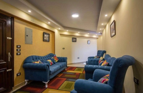 Panoramic Pyramids view apartment with 4 bedrooms with A/C rooms and living room and free wifi internet, located next to the pyramids, the building has two lifts and the apartment in the 6th floor and you can see the whole area from the highest point, a breathtaking view, you will never forget