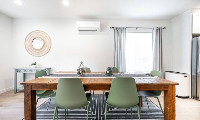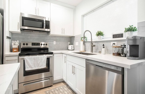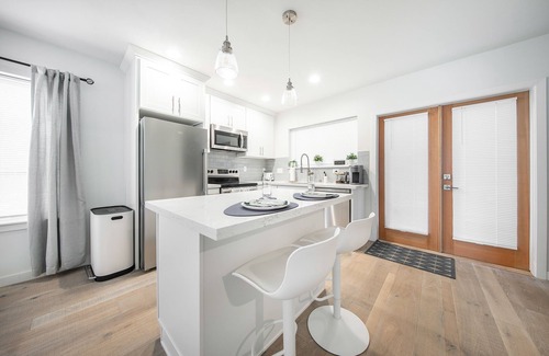 Features a fully stocked kitchen and spacious patio for eating at home. Enjoy restful nights with ©Helix mattresses and Quince™ Organic cotton bedding. Outside patio space with large gas grill and seating for 6.