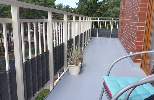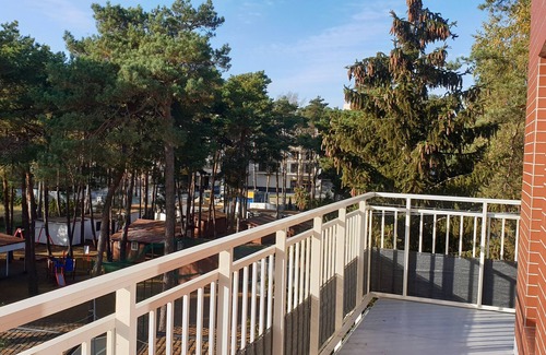 3 rooms, 1 living room and 2 bedrooms. All-round balcony with a view of the treetops. Located in the small town of Międzywodzie on the island of Wolin, between the Baltic Sea and the inland water (Zalew Kamieński), where there is a small port and where you can rent kayaks, motor boats or paddle boats in summer.