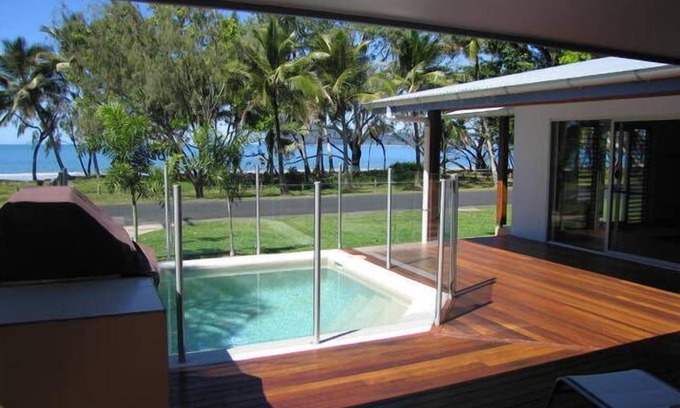 Located across the road from the beach, the house has uninterrupted views of the beach and Dunk Island