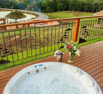 13 miles from Black Lake Gramado in Santa Maria do Erval, BANGALÔS REFÚGIO DO VALE features accommodations with access to a hot tub and open-air bath. With garden views, this accommodation provides a patio. All rooms come with a terrace with lake views and free Wifi. Accommodation is equipped with air conditioning, a fully equipped kitchenette with a dining area, a flat-screen TV, and a private bathroom with bath, bathrobes, and slippers. A microwave, a fridge, and stovetop are also provided, as well as a coffee machine and a kettle. At the chalet complex, all units come with bed linen and towels. The continental breakfast at the property offers local specialities as well as on-the-go options, such as fruit and juice. For guests with children, the chalet offers outdoor play equipment. Guests can swim in the outdoor swimming pool, go horse riding or fishing, relax in the garden, and use the barbecue facilities. Saint Peter's Church is 14 miles from BANGALÔS REFÚGIO DO VALE, while Gramado Bus Station is 14 miles away. Canela Airport is 19 miles from the property.