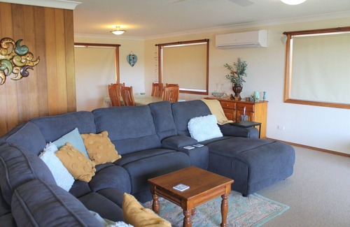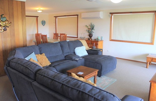 This large 3 bedroom home with a spacious downstarirs rumpus has an open living plan living area that opens to large front & rear deck. The rumpus area is tiled throught and is a great place for the children with it's own TV area and additional beds.