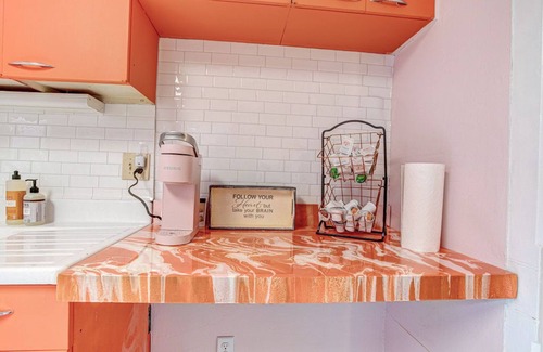 Indulge your inner Barbie fan with a kitchen that radiates pink and orange perfection, setting the stage for a culinary adventure like no other. The modern, fun accessories and stylish furniture complete the picture, creating an ambiance of pure playfulness and elegance. Every detail has been thoughtfully designed to immerse you in a world of Barbie-inspired magic.