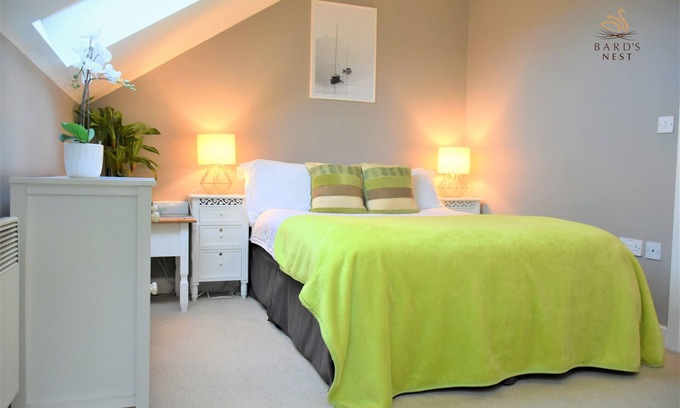 Bard's Nest, this beautiful, stylish, holiday let apartment is located in the heart of Stratford upon Avon, featuring 1 complimentary allocated parking (on the premises) , around 3 minutes' walk to Shakespeare's Birthplace, 8 minutes to Stratford upon Avon railway station, 8 minutes to the Royal Shakespeare Company.