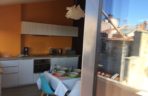 O heart of the Panier, the oldest district of Marseille. This loft is open to the sky, it was designed by an architect. A beautiful volume up to 5 meters of ceiling, lit by a large canopy or shaded by an external blind. It accommodates up to 6 people, is equipped with 180 cm or separate beds. Comfortable kitchen open to a large living room. The terrace, you will attend the spectacle of the Panier, the street below, the roofs, the Major and the unobstructed view opposite in the direction of L'Estaque, on the Star chain. Let yourself live and enjoy this unique neighborhood, this atypical place ... O in color.