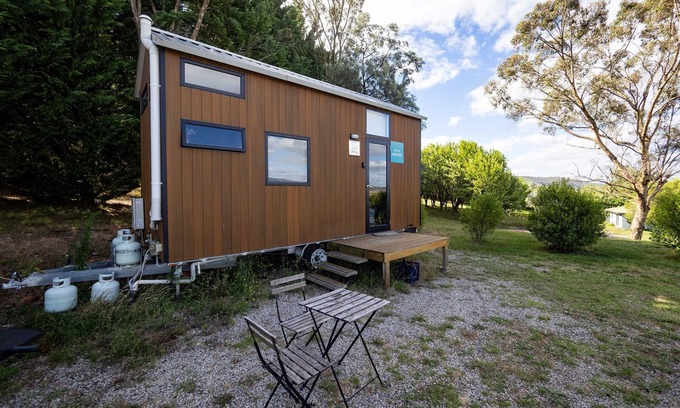 Baxter at Lake George Winery by Tiny Away is the perfect family staycation with a queen-sized bed up in the loft and a couch, which can be converted into a single bed on the ground floor.
