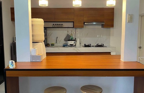 Relax with the whole family at this peaceful place to stay. Bay Mau Homestay the most convenient accommodation, just 2-minutes drive from Dahican Beach. Our fully air-conditioned living/ bed rooms unit can comfortably accommodate up to 9 guests with equipped with complete kitchen wares. Fast and reliable wifi (302mbps), perfect for those business travellers. This house is equipped with basic amenities, cooking essetials, and standby back up generator during power interruptions.