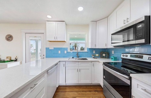 Long Time No Sea is a newly renovated paradise for family and friends. Walk out on the front deck to enjoy your cup of coffee or dinner overlooking the bay. Centrally located making it easy to get around town and enjoy everything Galveston has to offer.