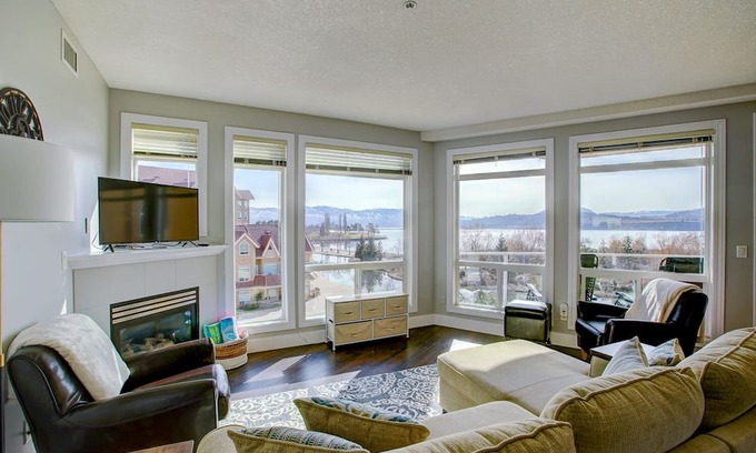 You can enjoy panoramic views of Okanagan lake from this stylish condo with room for up to 7 guests. Perfectly located downtown, you can hike to the look out at Knox Mountain in the morning, walk to tug boat beach for swimming and sun during the day and then head up the road for an amazing dinner at BNA, Central or Oak + Cru