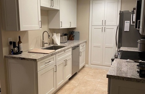 Great Winter Rental in Dana Point. Be the first Guest to stay in a first floor newly remodeled 1 Bedroom, 1 Bathroom condo with all new furniture and amenities. Ideal location for easy access to San Juan Creek bike/walking path direct and close to Doheny beach, Dana Point Harbor and many shops/restaurants. New upgraded granite countertops, cabinets, appliances, 55" LG TV, King Size Bed, Queen Sofa Bed. Kitchen well stocked with essentials required of a gourmet chef. Located in the quiet Spinnaker Run Gated Community, having a heated jacuzzi, and sauna. Beautiful park and Senior Community center adjacent to complex with walking paths, tennis and pickle ball courts.